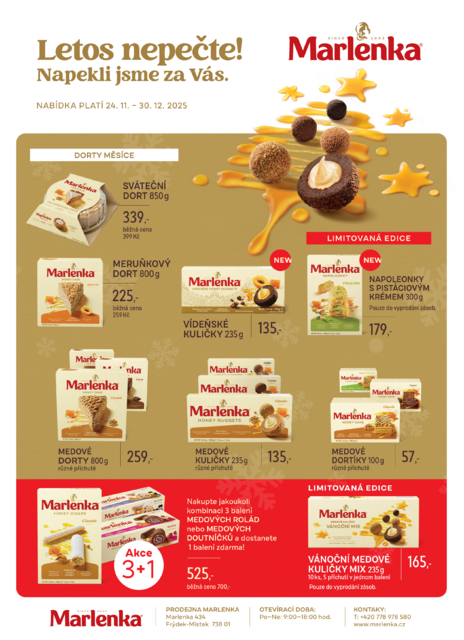 Vyzkoušejte Sváteční medový dort MARLENKA® – nyní na prodejně za výhodnou cenu!